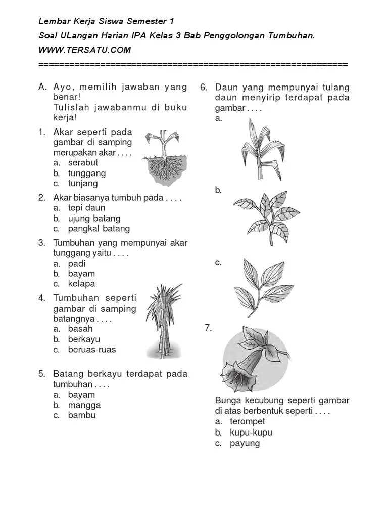 Soal ulangan ipa sd kelas 3 untuk latihan ulangan harian semester 1.